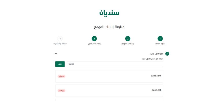 - كيفية الاختيار: ابحث عن نطاق متاح أو قم بربط نطاقك الحالي مع سنديان.