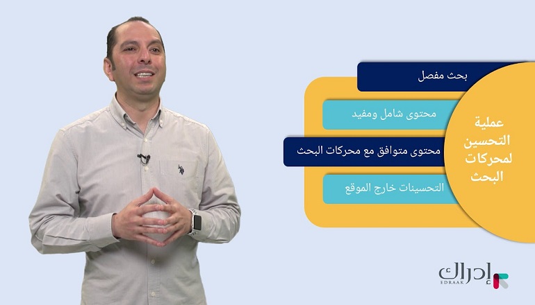 كورس تحسين محركات البحث (SEO) المقدم من منصة إدراك هو أحد أفضل الكورسات المجانية العربية لتعلم أساسيات ومتقدمات السيو، مع إمكانية الحصول على شهادة معتمدة بعد إتمام الكورس بنجاح.